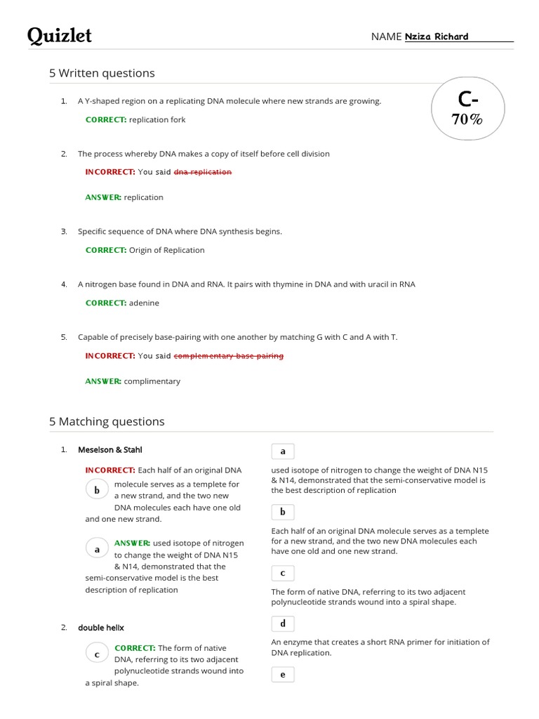 Dna Replication Worksheet Answer Key Quizlet / Dna Structure And Replication Worksheet Dna Structure And Replication Worksheet Dna Replication What Is The First Step In The Process Of Dna Replication Kumpulan Alamat Grapari Telkomsel Dan Alamat Bank / Dna replication // answer key.. These questions can be used for the preparation of all the competitive examinations in biology / life sciences such as csir jrf net, icmr jrf, dbt. Section 12 2 chromosones and dna replication some of the worksheets for this concept are 122 chromosomes and dna replication, chapter 12 dna rna section review answer key. The method of dna replication is known as q. Start studying amoeba sisters video recap: 4.)hydrogen bonds between nucleotides form.