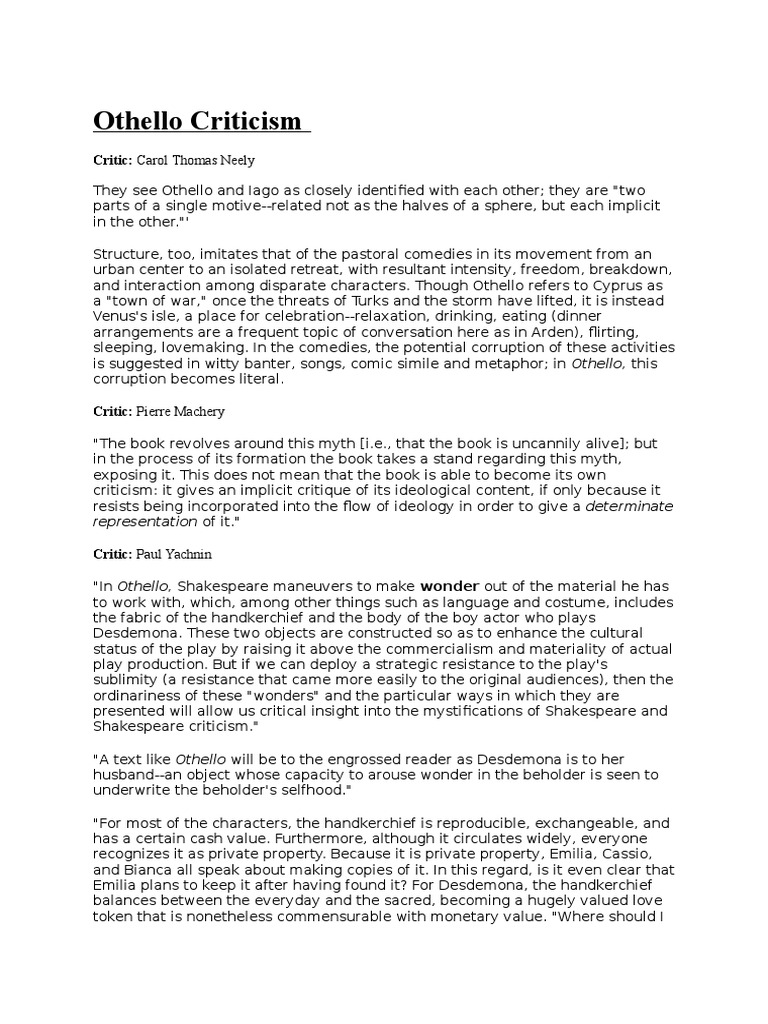 The meaning of his speech is that other races will be accepted while they are useful, and while they remember they belong and stick to it. Othello's context• the word moor now refers to the islamic arabic inhabitants of north africa who conquered spain in the eighth century, but the term was used rather broadly in the period and was sometimes applied to africans from other regions. In the 16th century, racial discrimination was prevalent. Rymer (iago) iago is too evil to be believed. In other people's perspective in society.